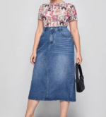 Fabric: Made from durable, stretch denim, this skirt provides a comfortable fit with just the right amount of flexibility. The mid-blue wash gives it a timeless appeal that pairs effortlessly with various tops and accessories.